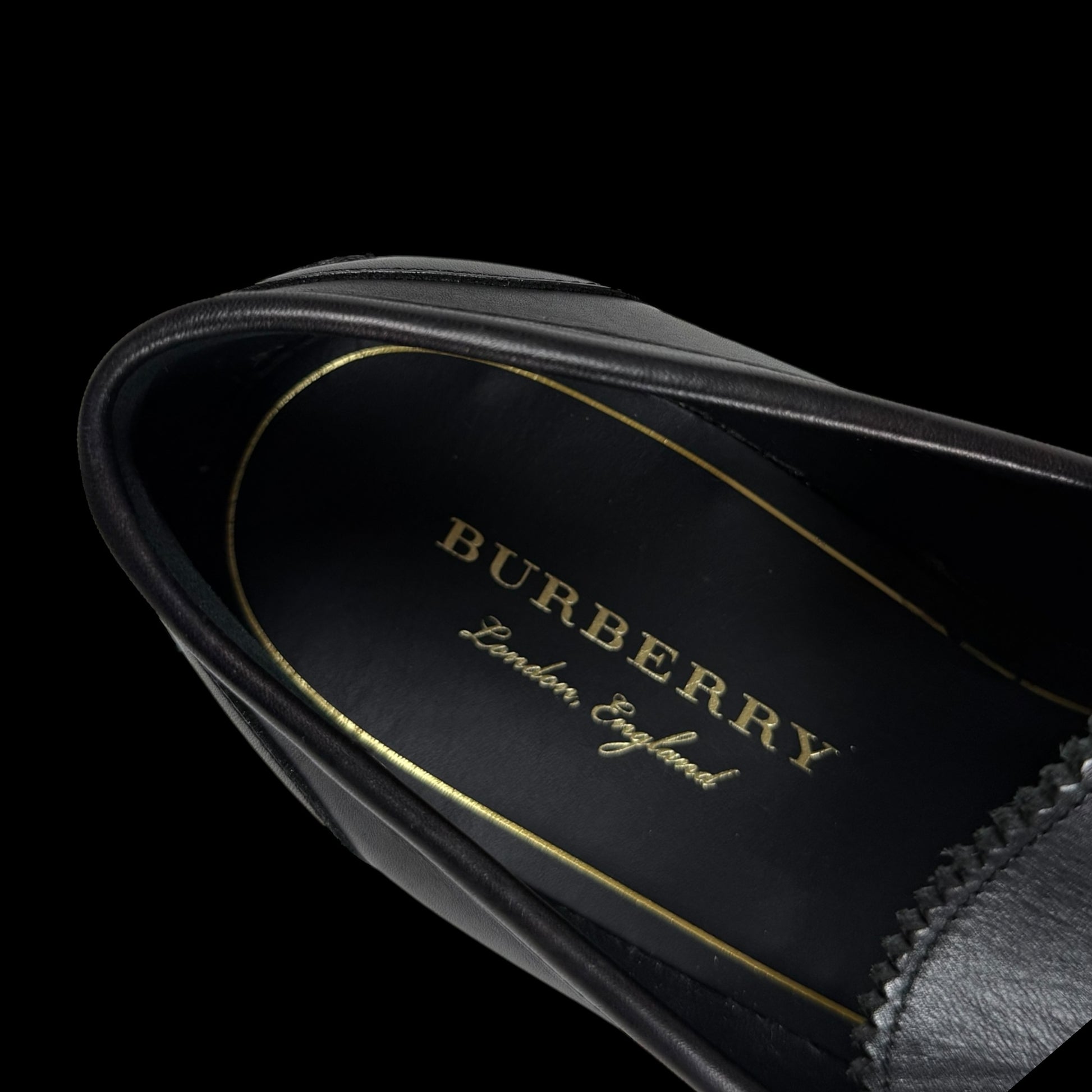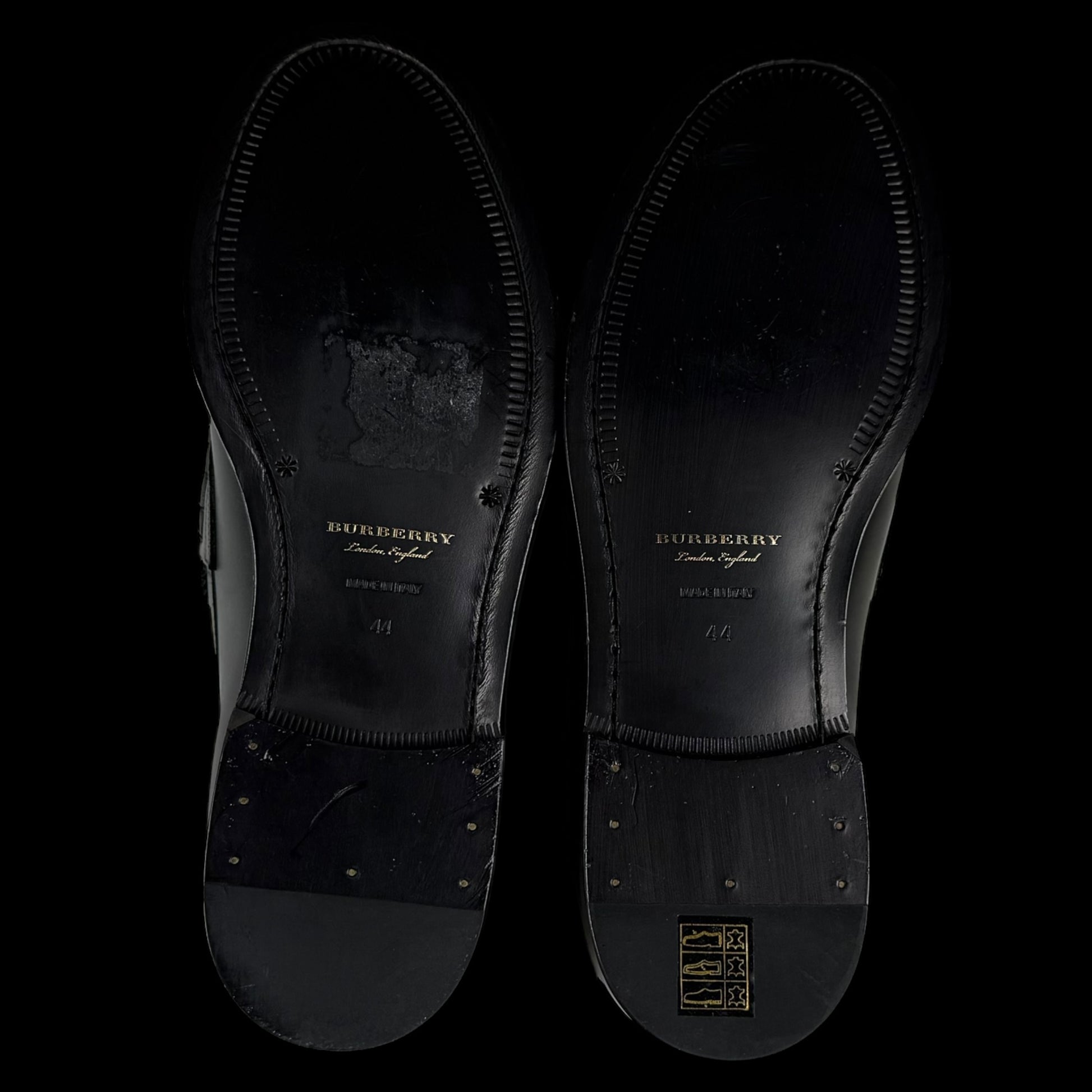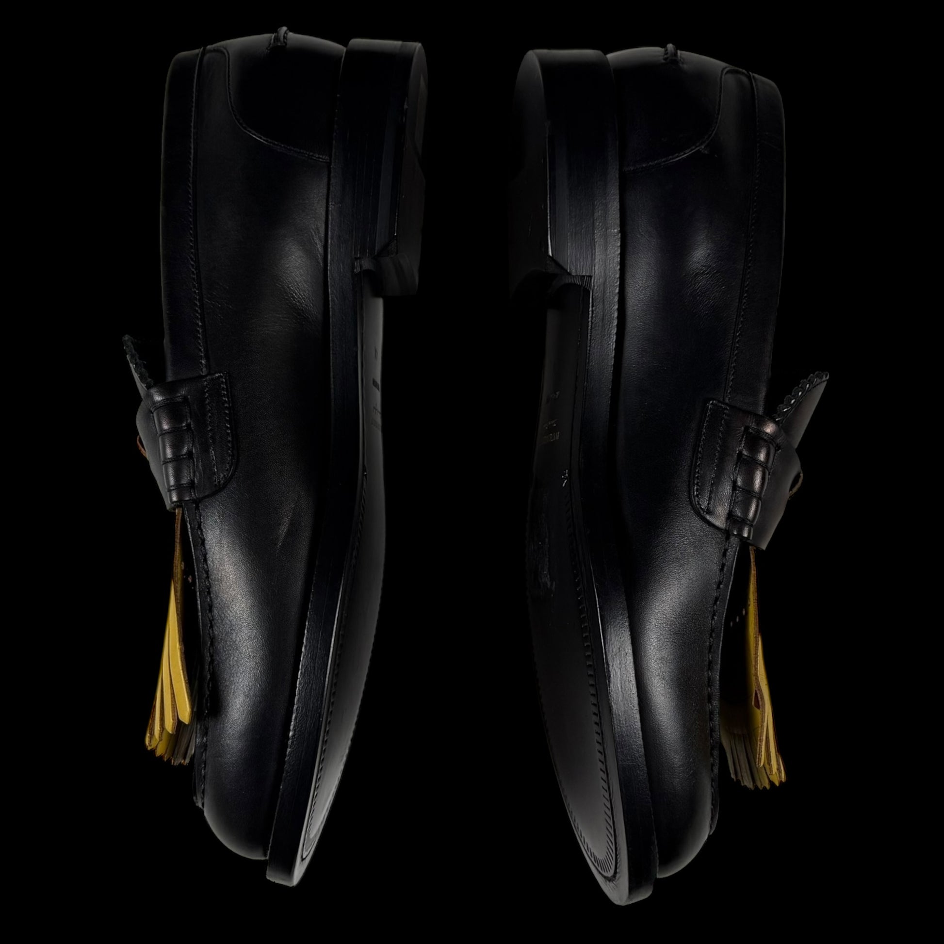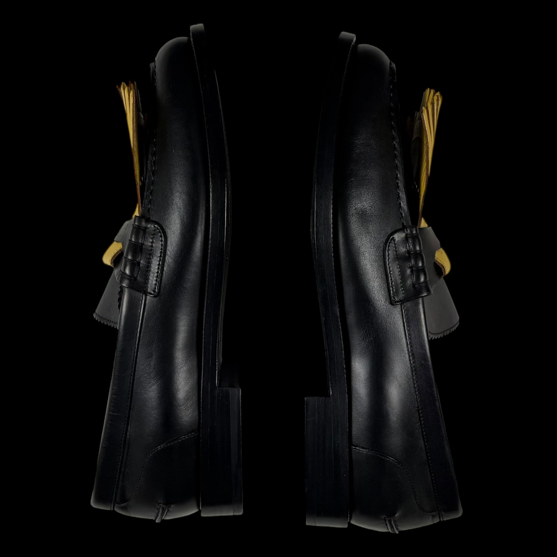 Burberry Kiltie Fringe Leather Loafers Black /Yellow (Fits US10.5-11)