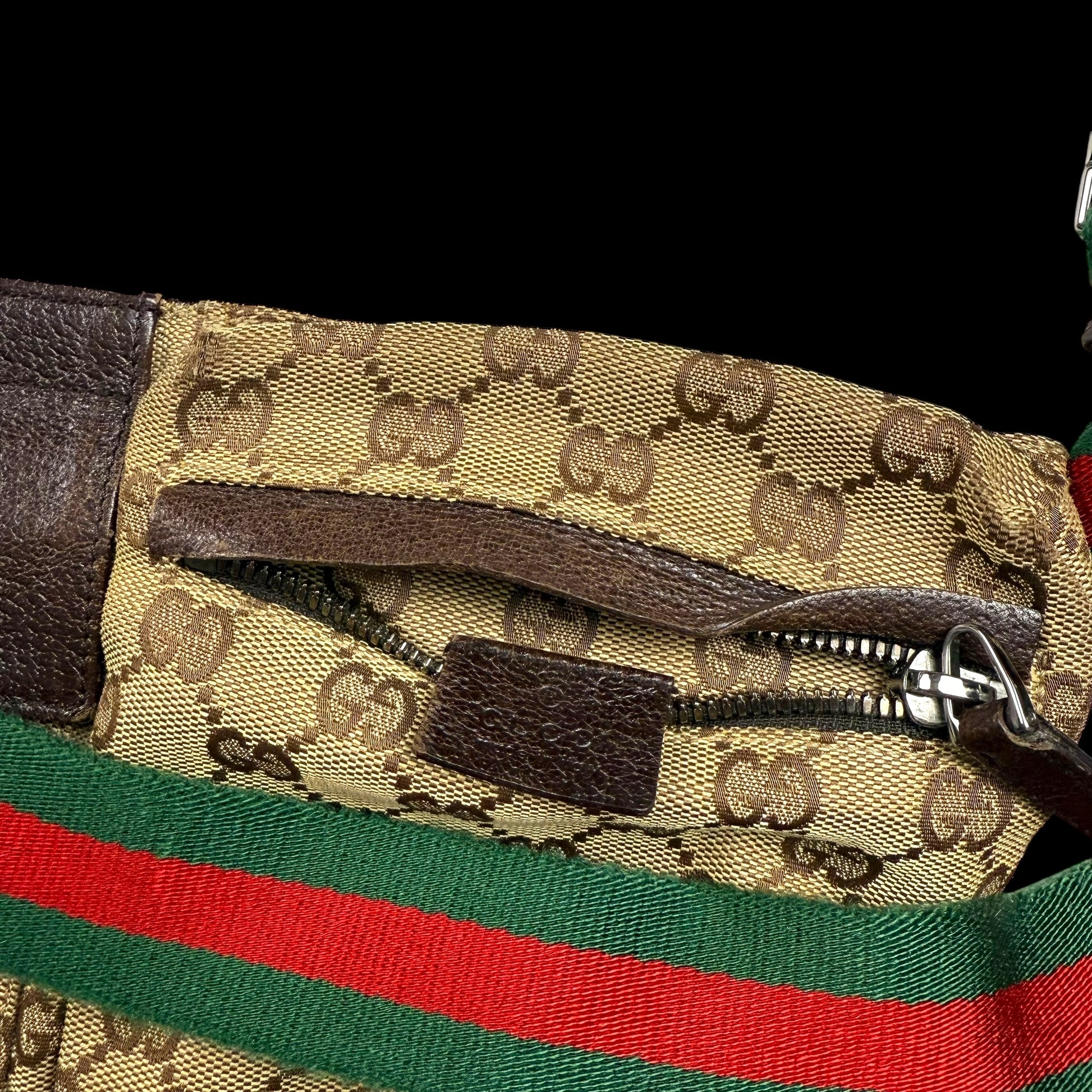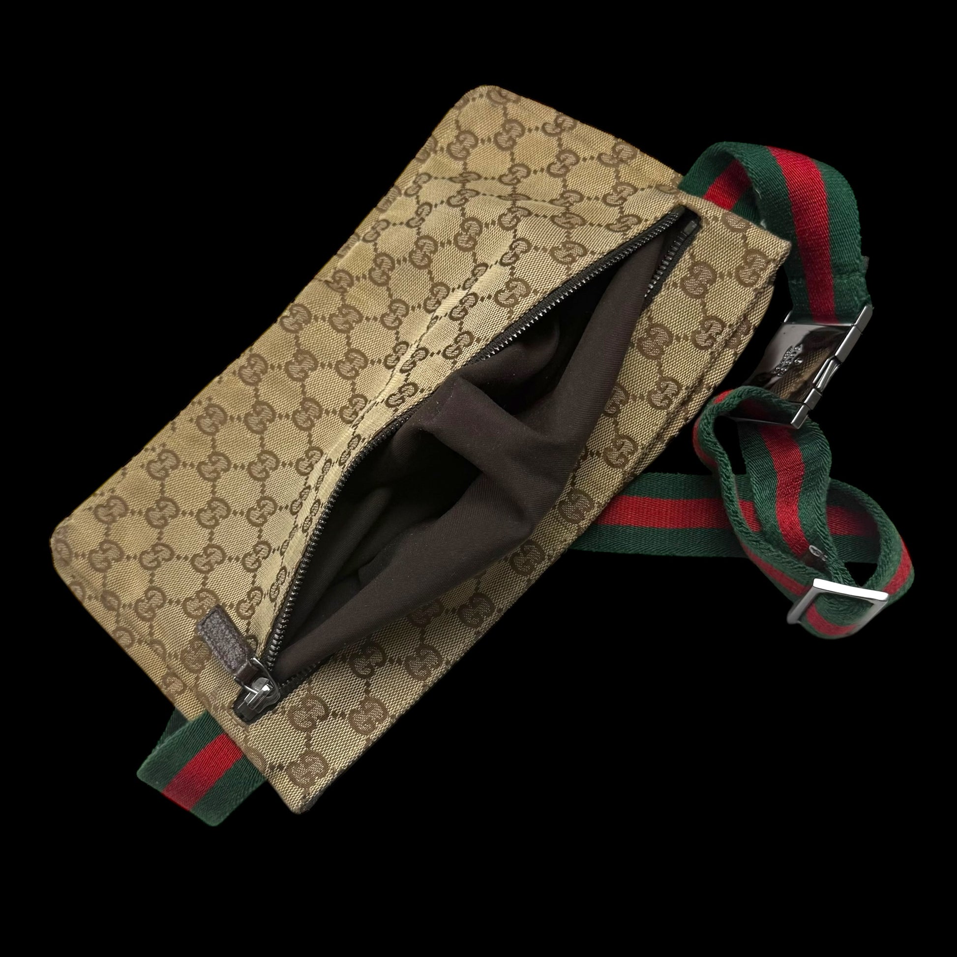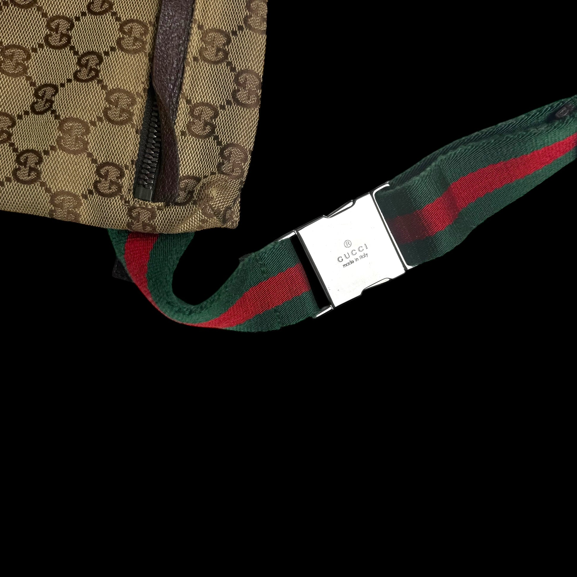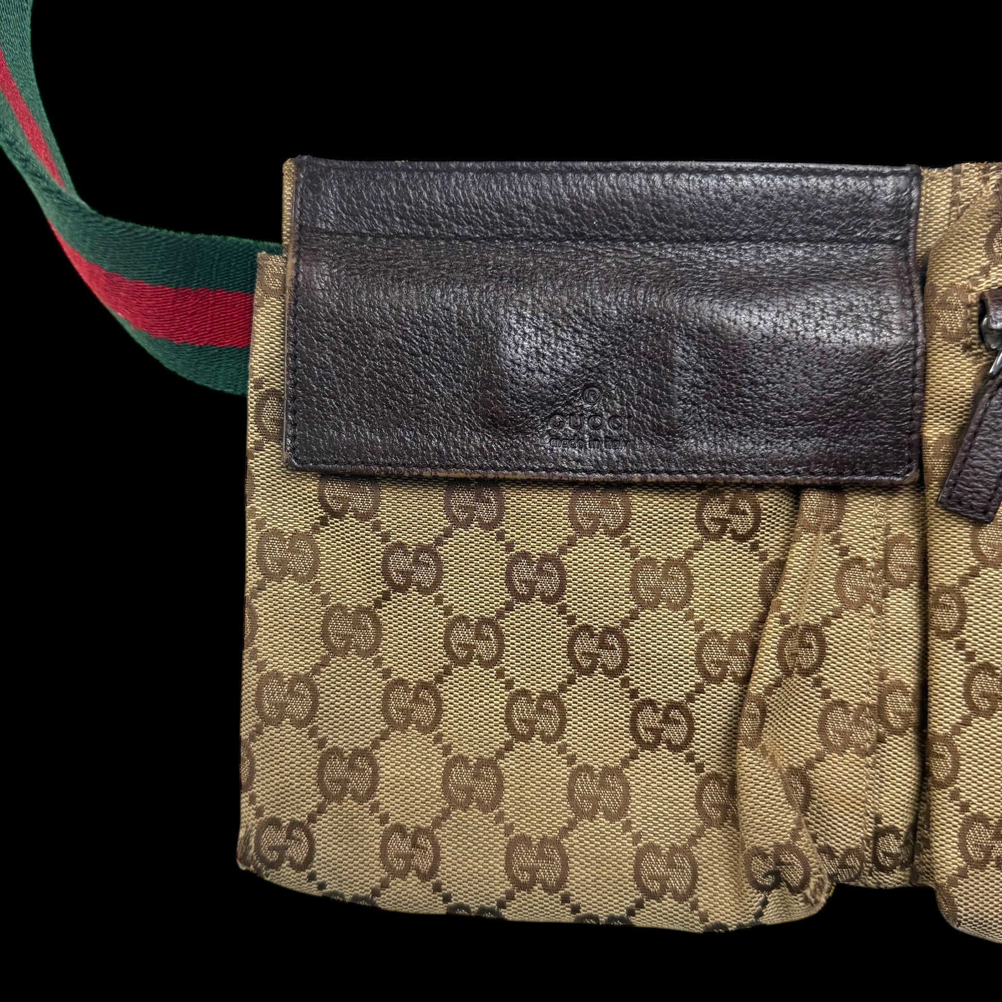 Gucci GG Canvas Web Double Pocket Belt Bag Brown