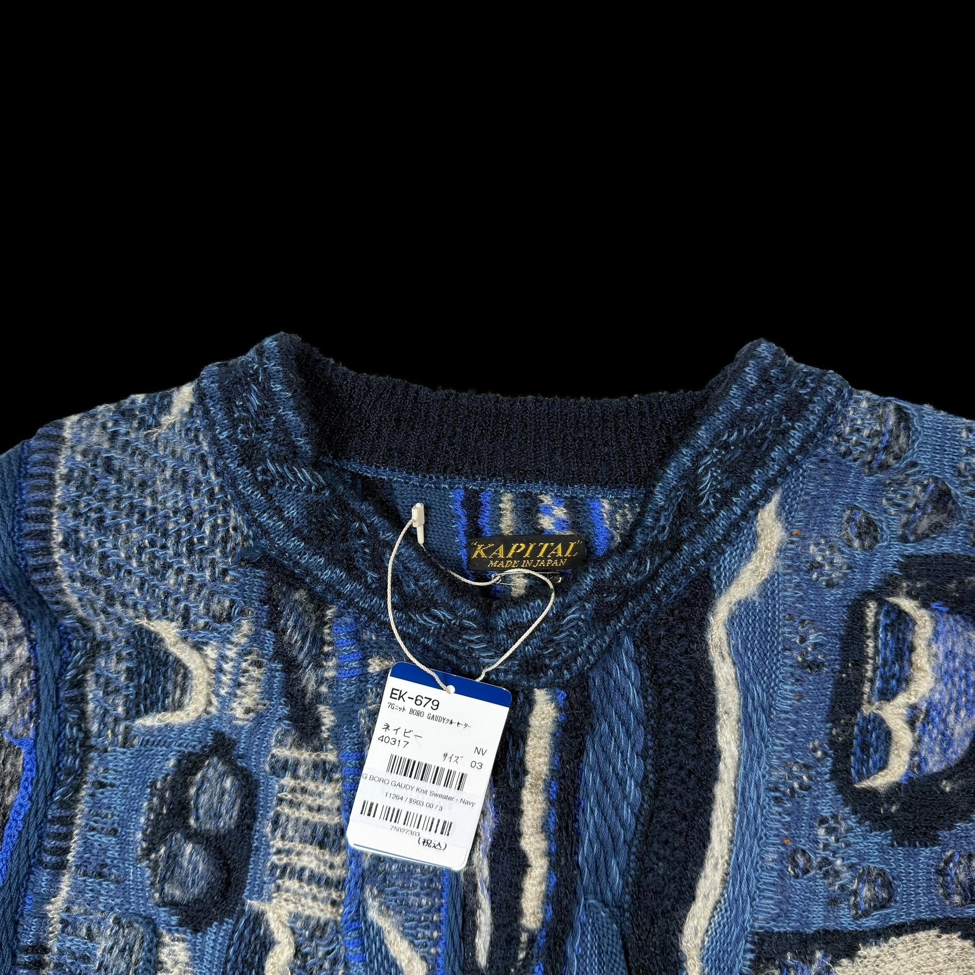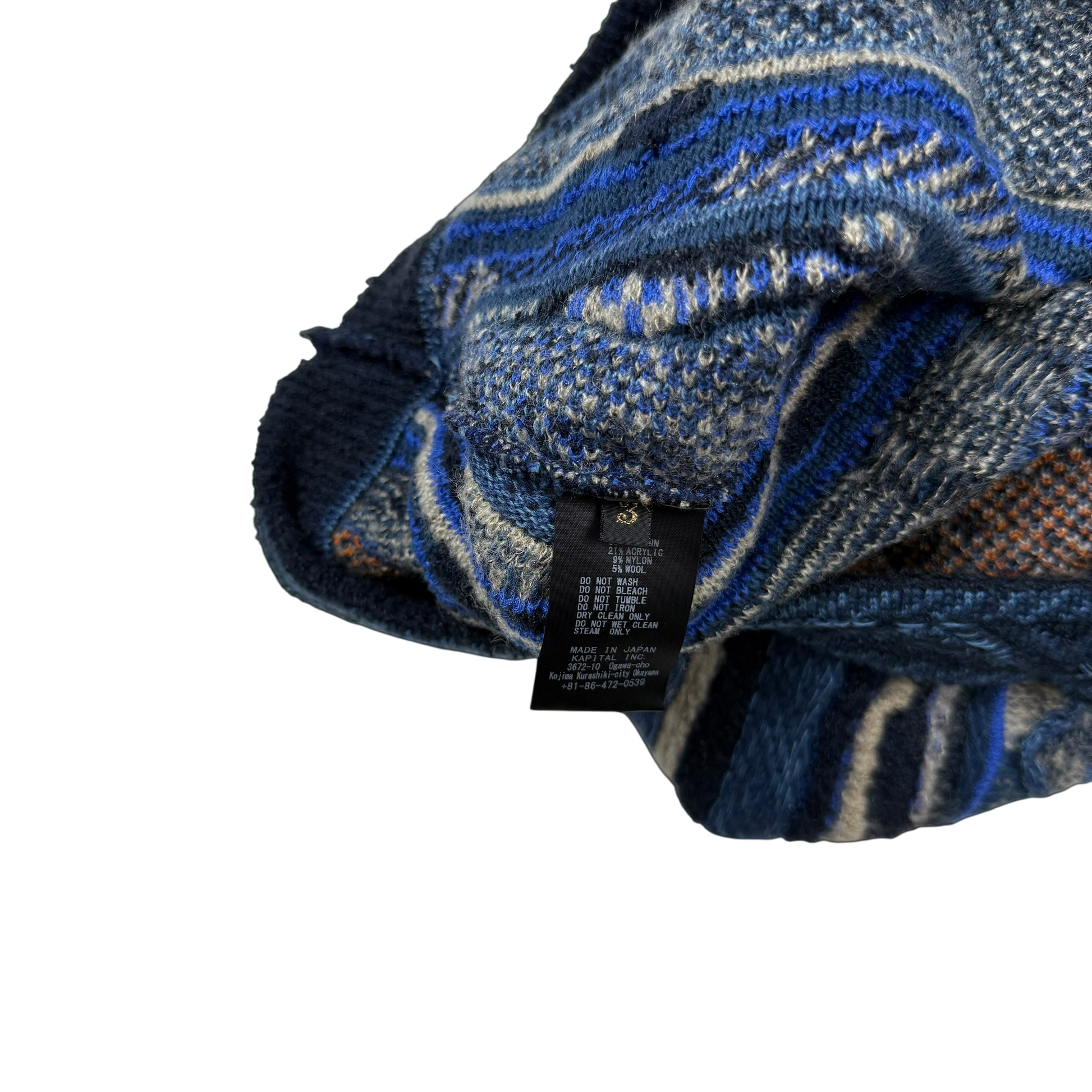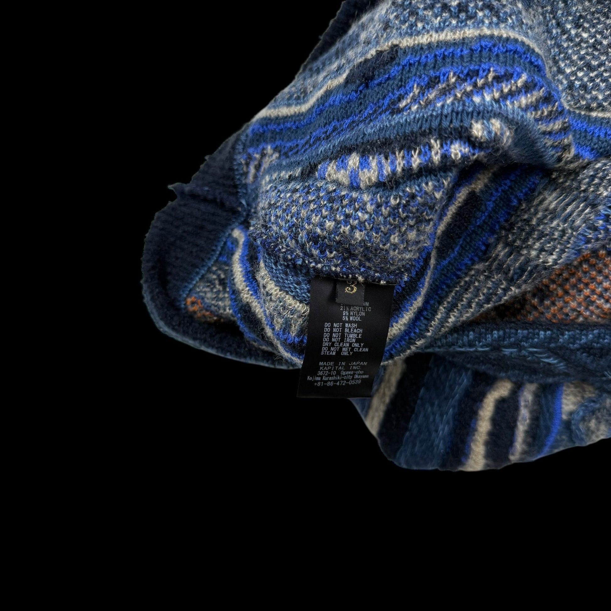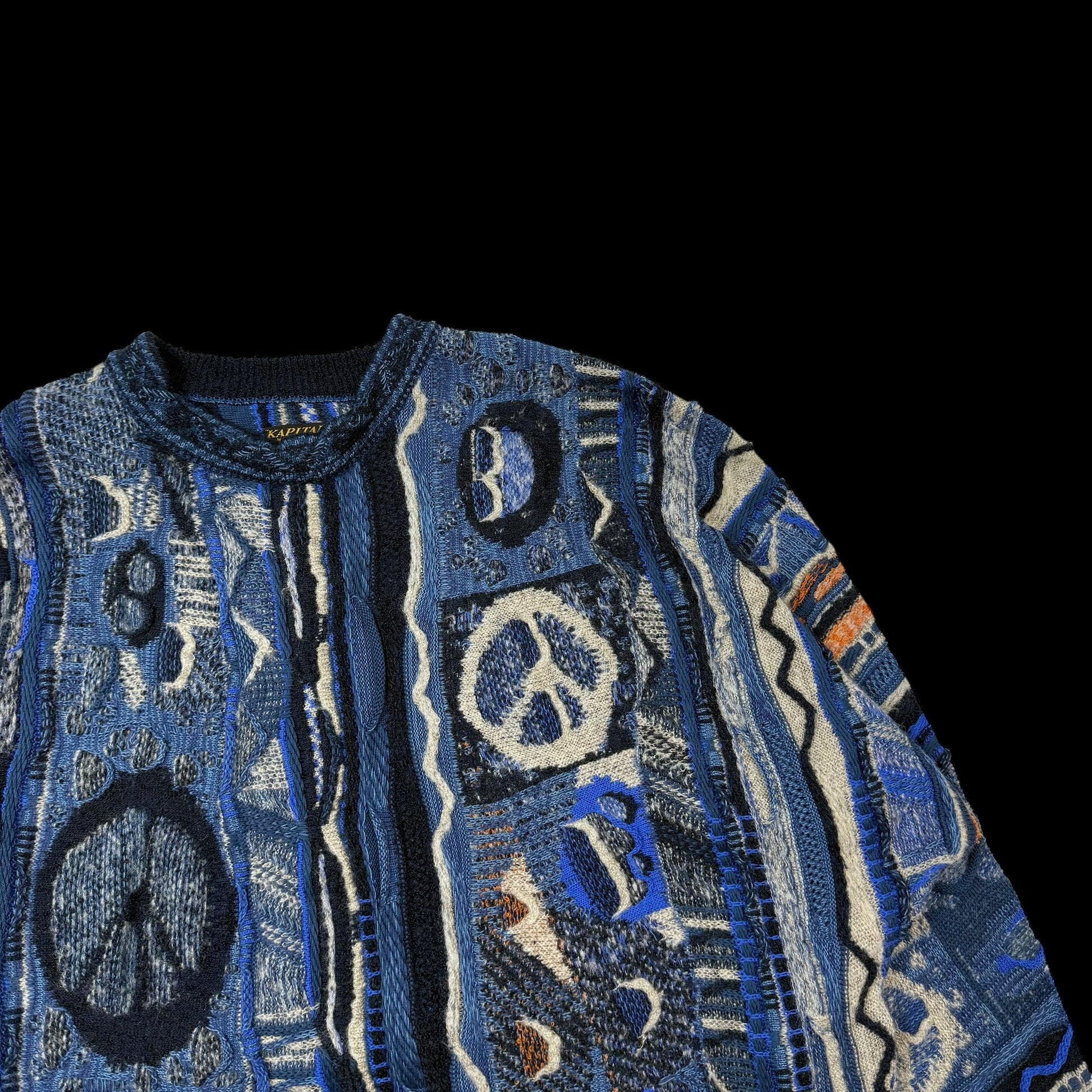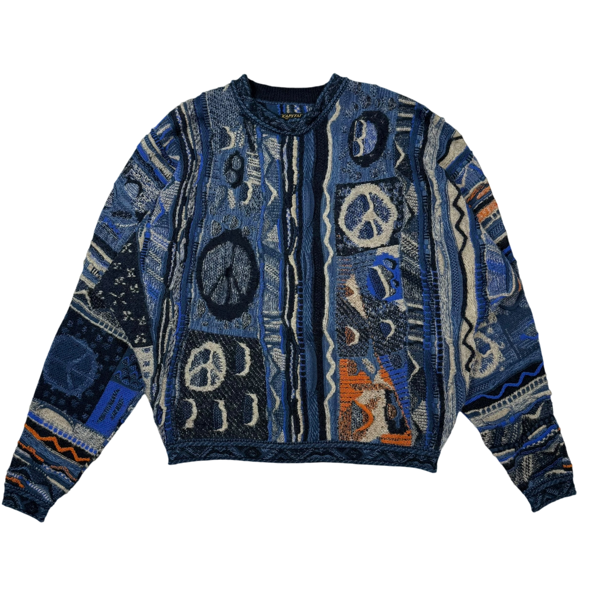 Kapital 7G Gaudy Knit Peace Sweatshirt Blue (fits M-L)