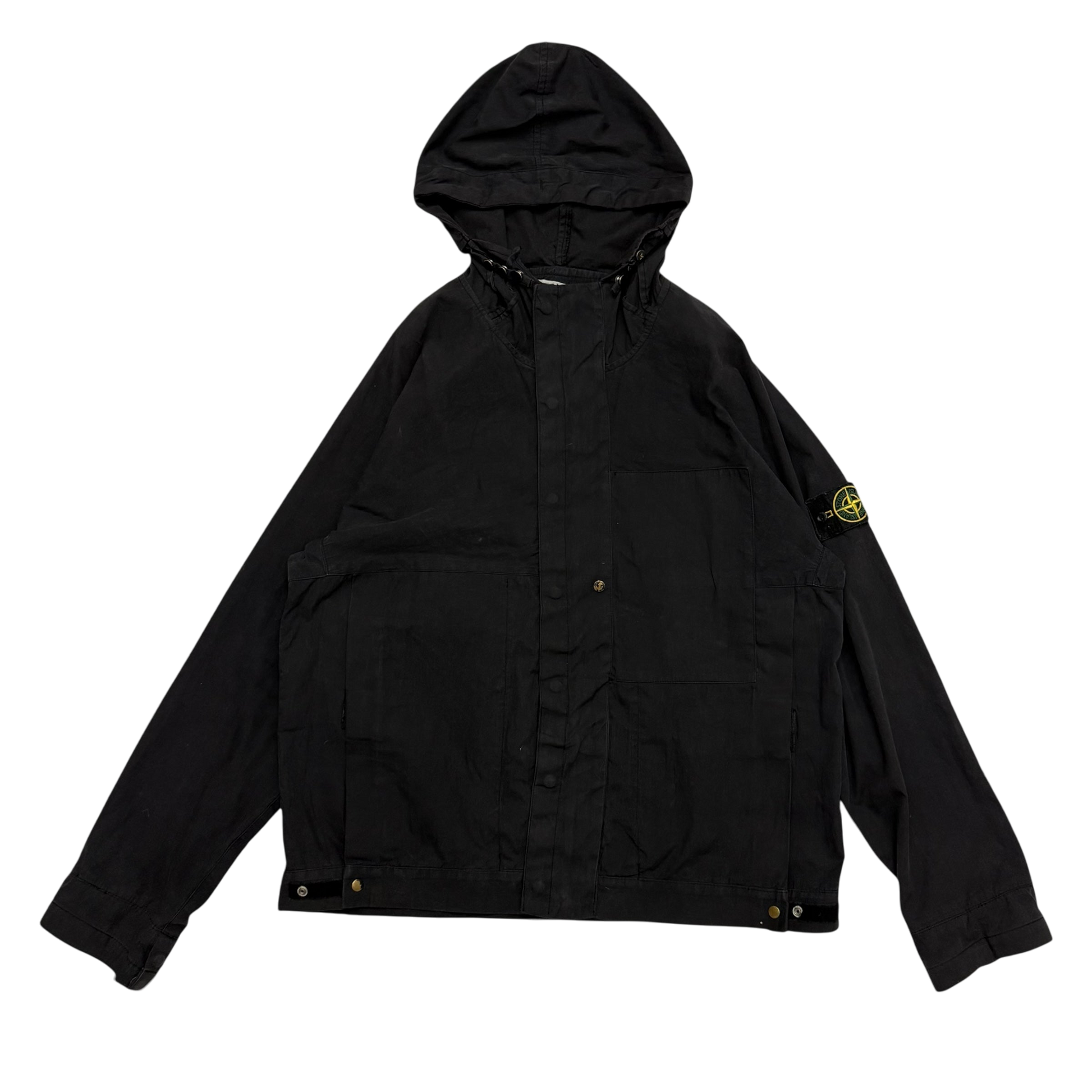 Stone Island SS 2004 Black Raso Gommato Jacket Black (Size L)