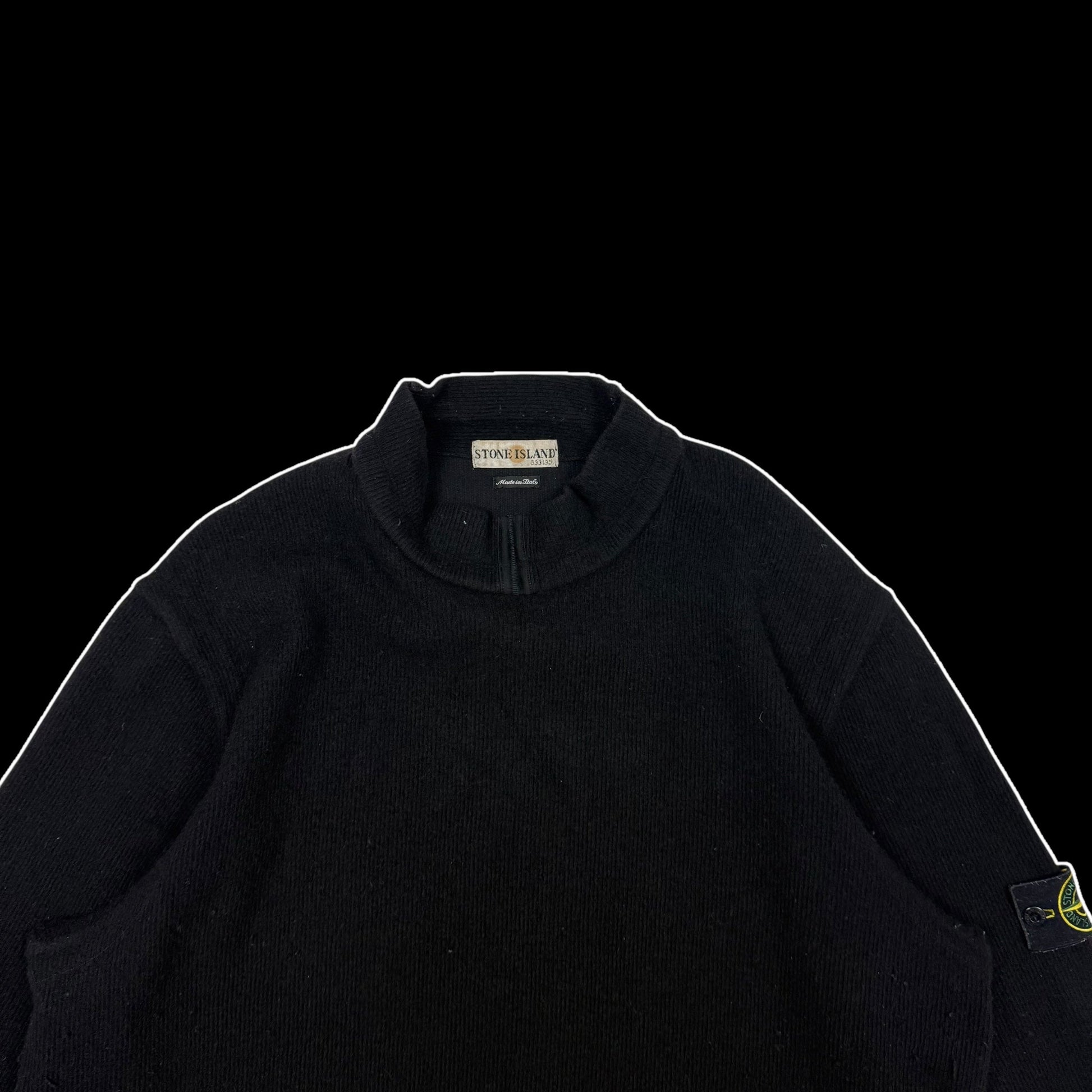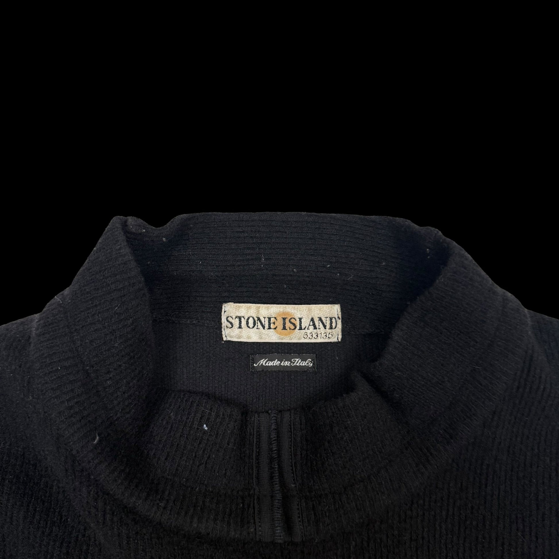 Stone Island 90s Mock Neck Wool Knit Sweatshirt Black (Size XXL)
