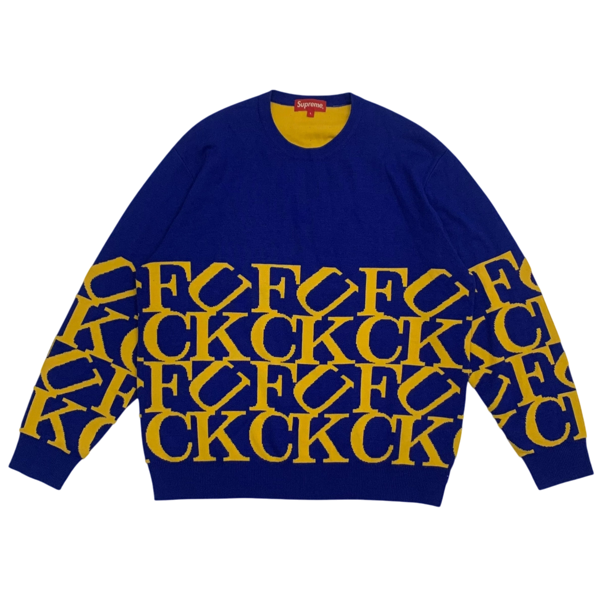 Supreme FW23 ‘Fuck’ Knit Sweatshirt Royal Blue / Yellow (Size L)